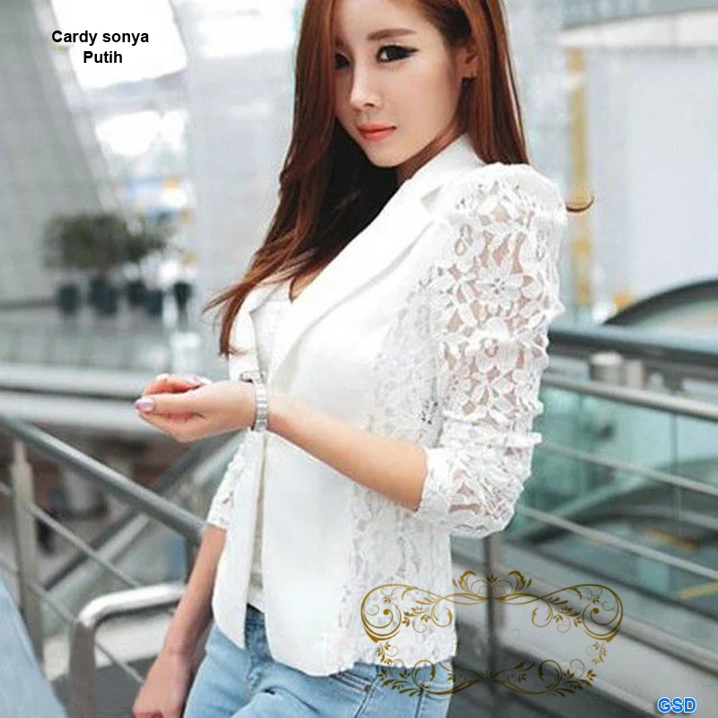 Cardi sonya pth@50rb min 3pcs ecer 55rb bahan baletoli kombi brukat belakang lengan panjang Ld90cm Pjg57cm ada kancing 1 No Furing,No inner Fit M (200gr)