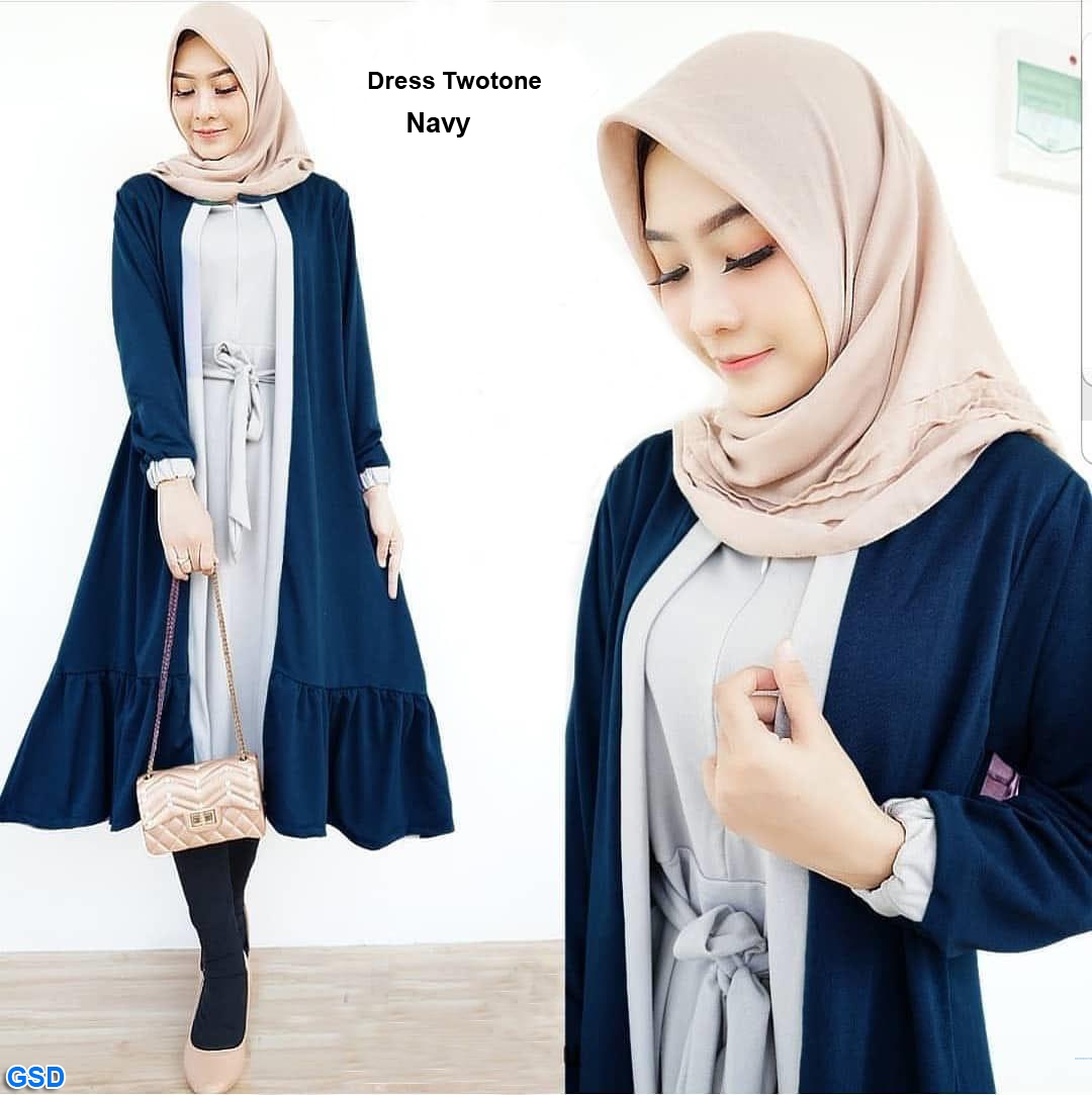Dress twotone navy@65rb min 3pcs ecer 70rb bahan baletoli dress nyatu ,lengan panjang seleting depan tali ikat Ld90cm Pjg95cm Fit M (420gr)