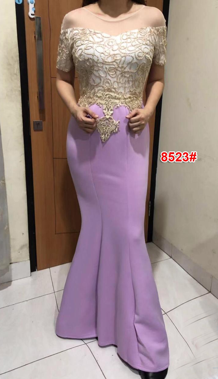 longdress 8523 ungu muda@175rb min 3pcs ecer 180rb bahan brukat kombi tile kombi scuba Ld80cm Pjg135cm Fit M (650gr)