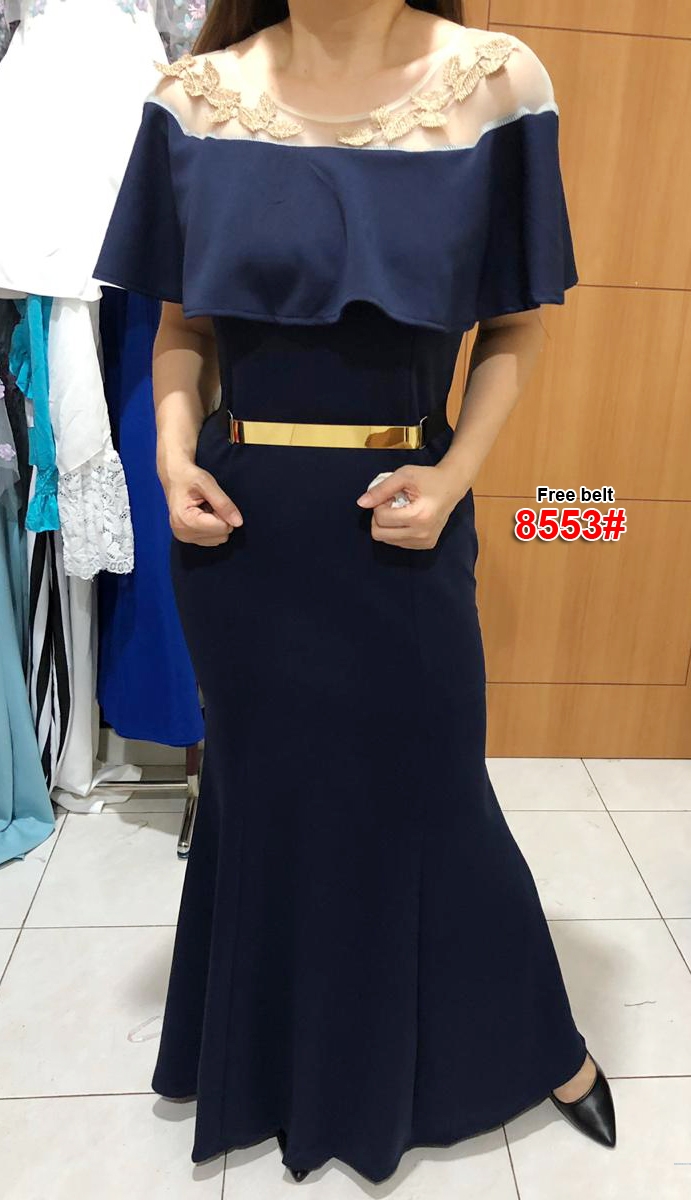Longdress 8553 navy@175rb min 3pcs ecer 180rb bahan Scuba kombi tile brukat LD80cm Pjg135cm + Belt Fit M (600gr)