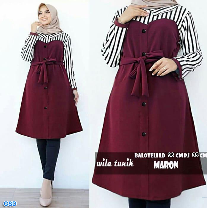Tunik wila maroon@60rb min 3pcs ecer 65rb bahan baletoli kombi katun salur Ld96cm Pjg95cm Fit L (300gr)