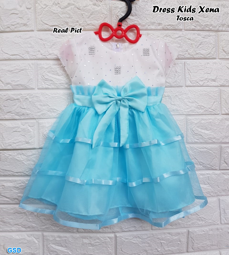 Dress kids xena tosca@50rb min 3pcs ecer 55rb bahan saten kombi tile Ld50cm Pjg45cm fit anak 1thn-2thn (tidak ada ukuran tergantung anak ) 120gr