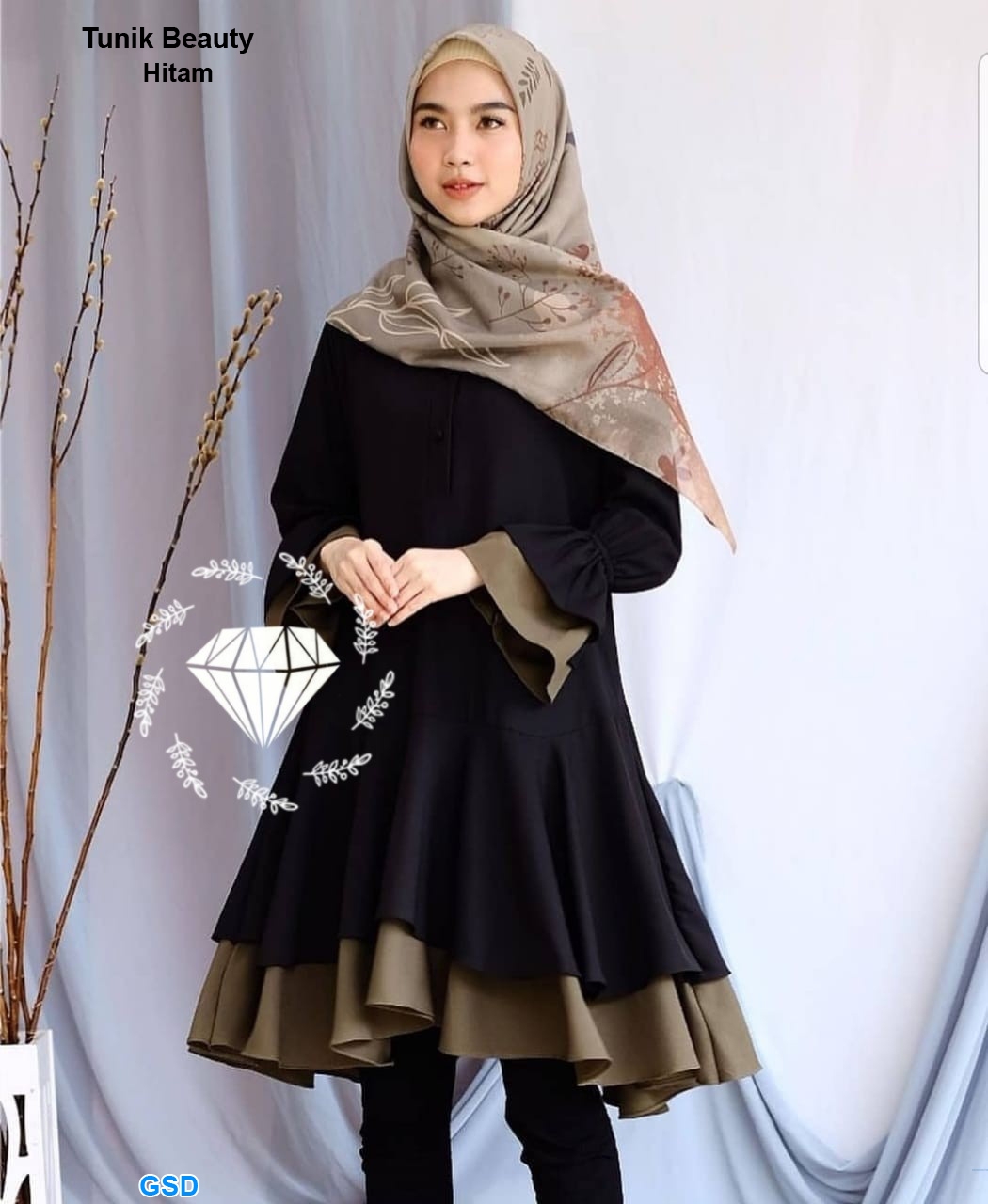 Tunik beauty hitam@74rb min 3pcs ecer 79rb bahan full moscrepe Ld110cm Pjg113cm kacing dada hidup ,tangan karet Fit L (400gr)