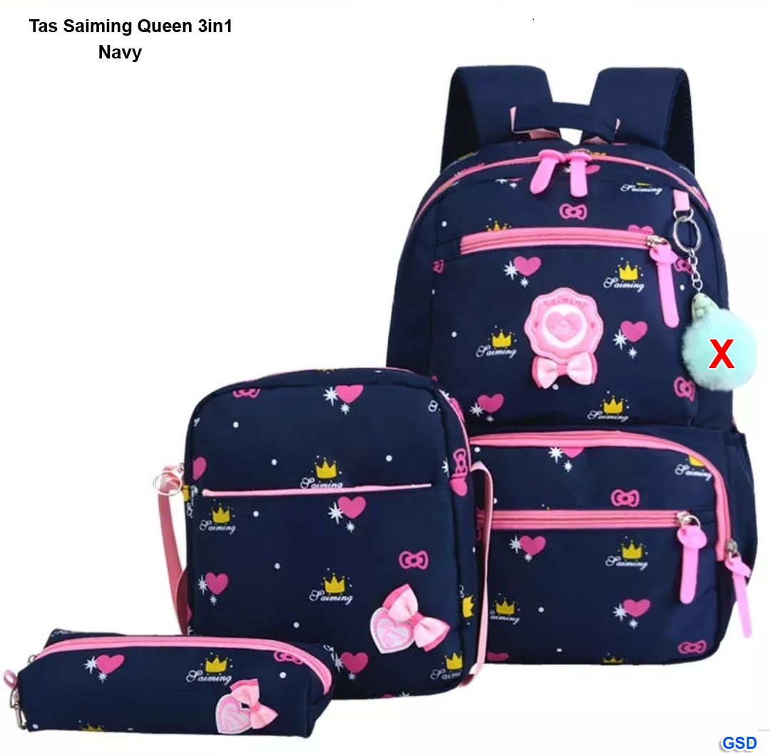 Tas saiming queen 3in1 navy@50rb min 3pcs ecer 55rb bahan kanvas tinggi 40cm Panjang 27cm Lebar 12cm (420gr)