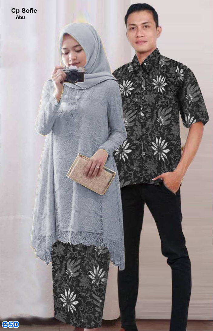 Cp sofie abu@140rb min 3pcs ecer 145rb bahan tunik brukat import lapis furing Ld110cm Pjg82cm+rok batik silk pinggang karet+ Cowok:kemeja batik silk Ld100cm Fit L (600gr)