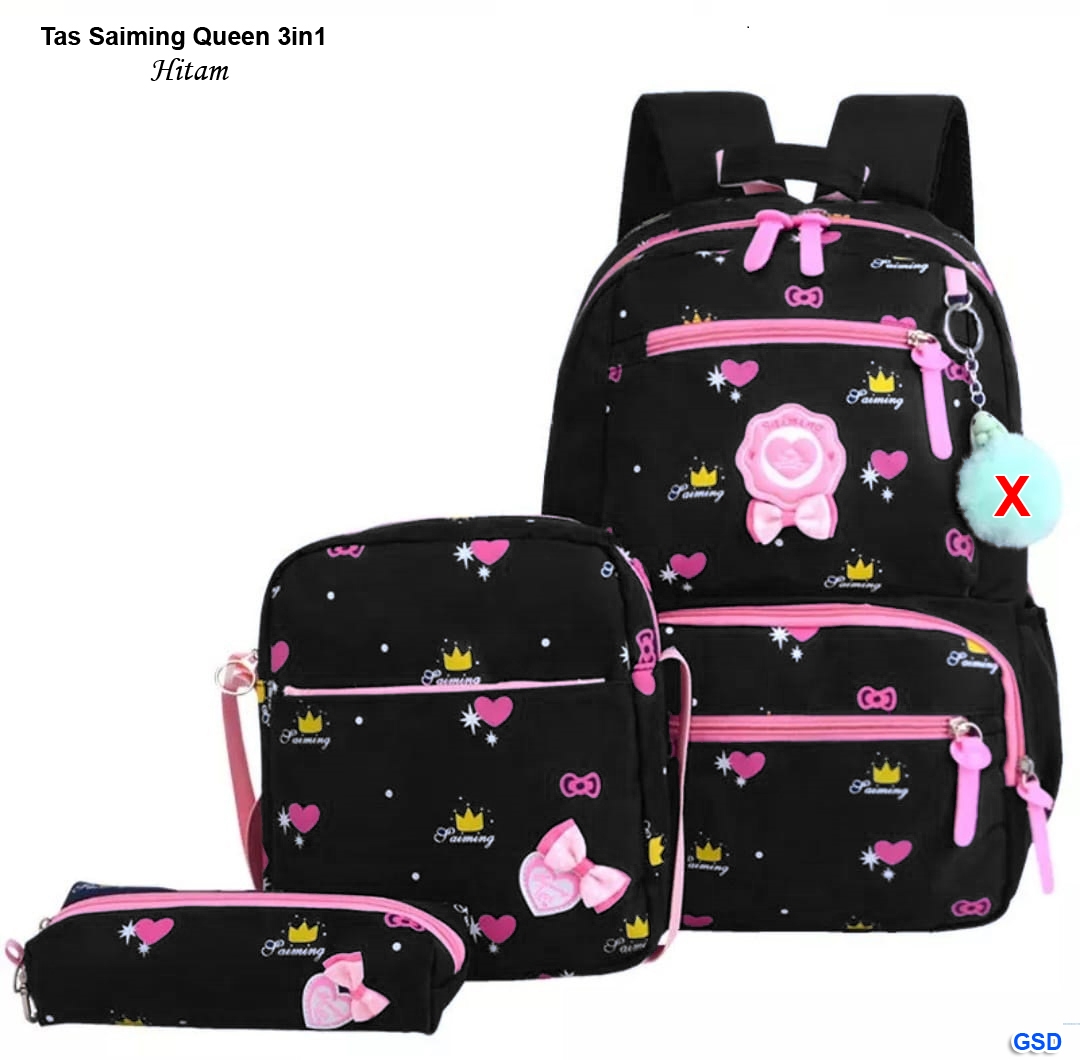 Tas saiming queen 3in1 hitam@50rb min 3pcs ecer 55rb bahan kanvas tinggi 40cm Panjang 27cm Lebar 12cm (420gr)