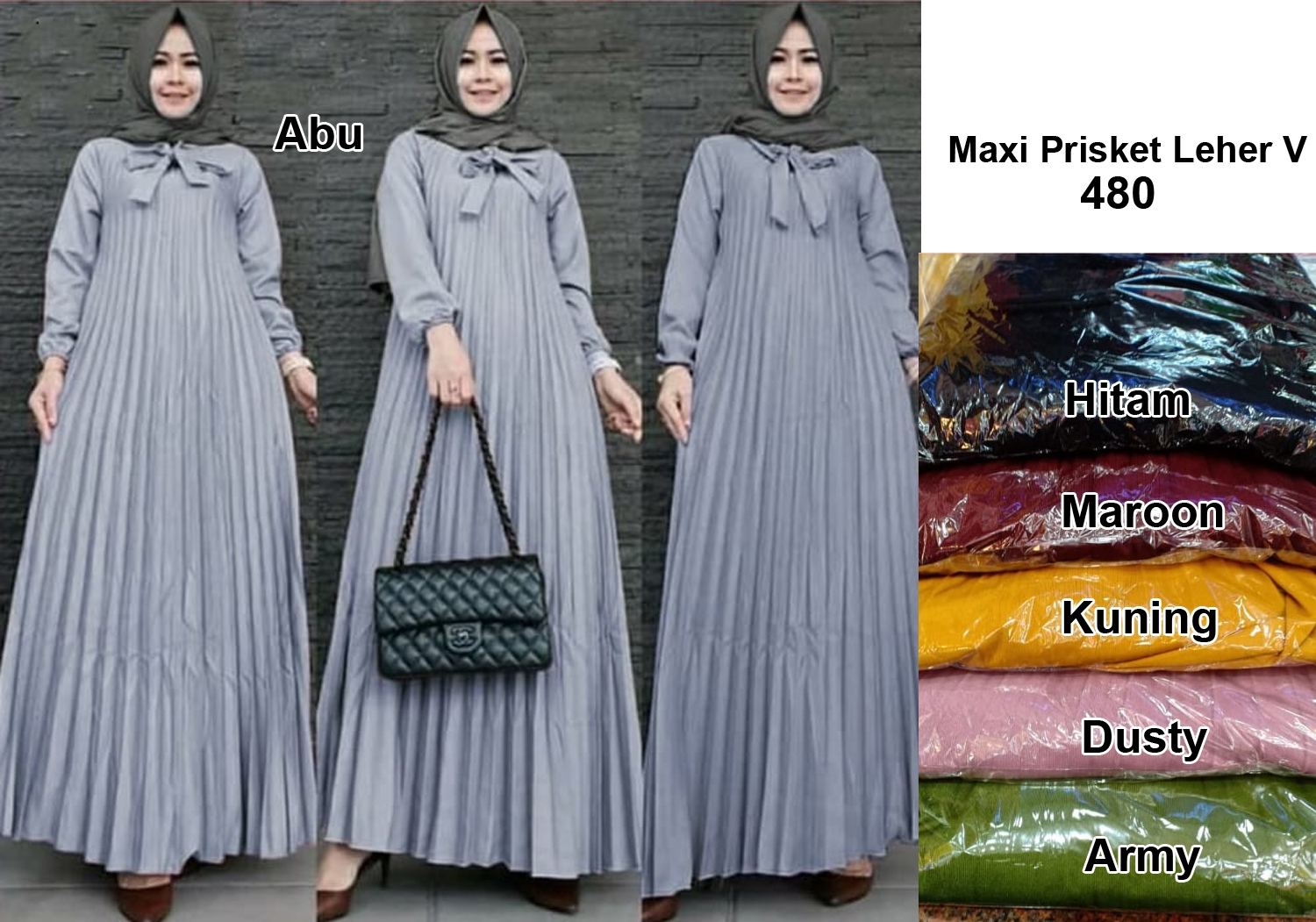 Maxi Prisket 480@60rb seri 6pcs (warna) ecer 65rb bahan spandek lengan panjang prisket Ld100cm Pjg128cm Fit L (500gr)
