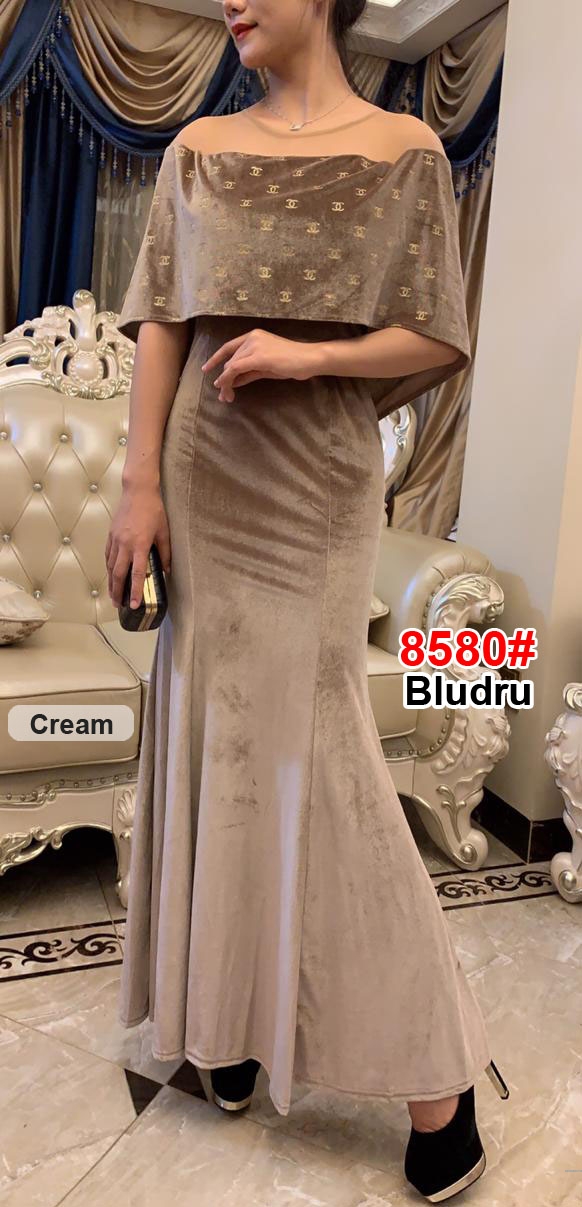 Longdress 8580 krem@175rb min 3pcs ecer 180rb bahan bludru Ld80cm Pjg130cm Fit M (600gr)