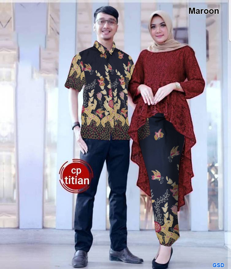 Cp titian maroon@145rb min 3psg ecer 150rb bahan brukat lapis furing Ld100cm pinggang belakang karet panjang depan 62cm Pjg belakang 110cm + Rok span batik silk motif asli LP94cm + Kemeja batik Ld104cm Fit L (600gr) No Pasmina