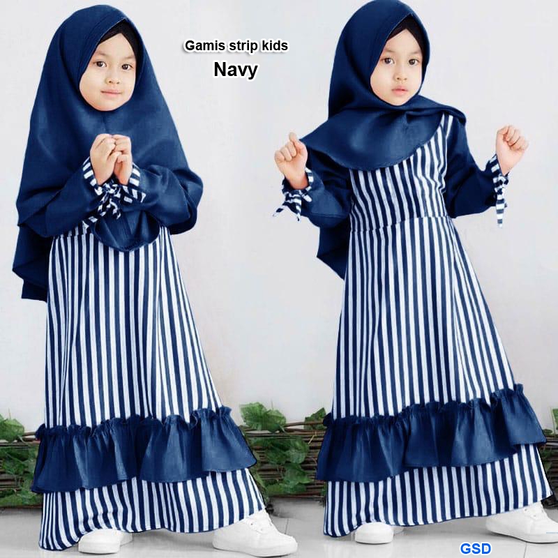 gamis strip navy@68rb min 3pcs ecer 73rb bahan katun salur kombi baletoli ,maxii lengan panjang belakang atas kancing 1 Ld80cm Pjg85cm +bergo Pjg45cm fit anak 5-7thn (No size,tergantung anak (320gr)