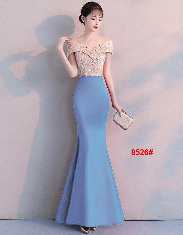Longdress 8526 biru muda@175rb min 3pcs ecer 180rb bahan scuba kombi bling Ld80cm Pjg130cm Fit M (600gr)
