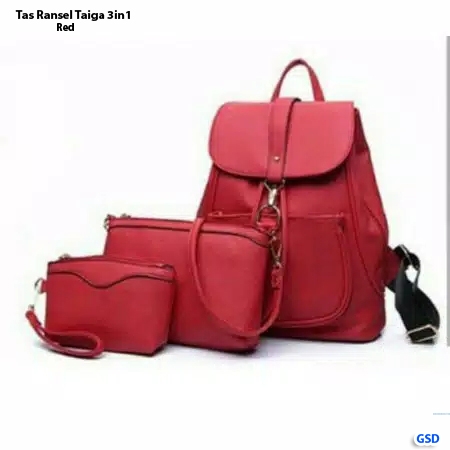 Tas Taiga 3in1 red@55rb min 3pcs ecer 60rb bahan kulit sintetis tinggi 32cm Pjg24cm Lebar 10cm (520gr)