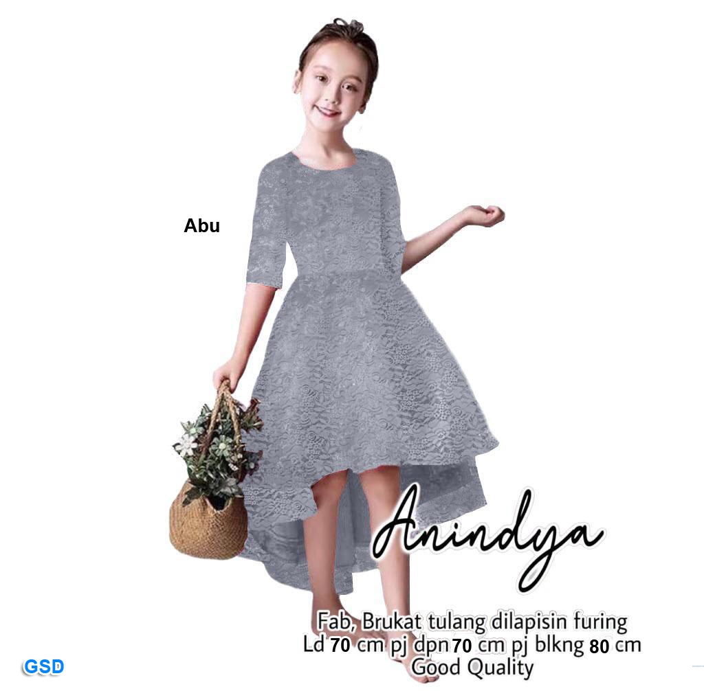 Kids anindya abu@85rb min 3pcs ecer 90rb bahan brukat tulang lapisin furing Ld70cm Pjg depan 70cm Pjg belakang 80cm Fit anak 5-7thn (tidak ada ukuran tergantung anak) (300gr)