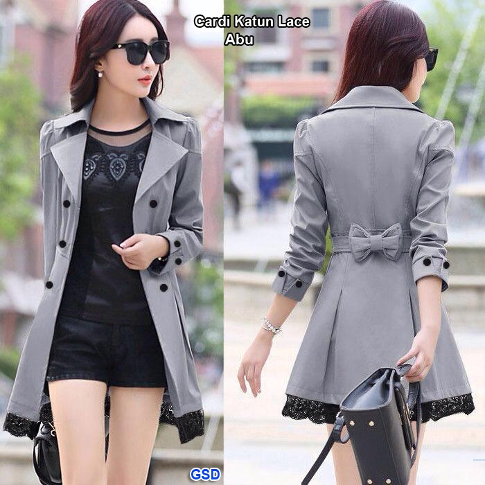 Cardi katun lace abu@75rb min 3pcs ecer 80rb bahan katun streth kombi renda hitam,lengan panjang Ld90cm Pjg80cm Fit M (320gr)