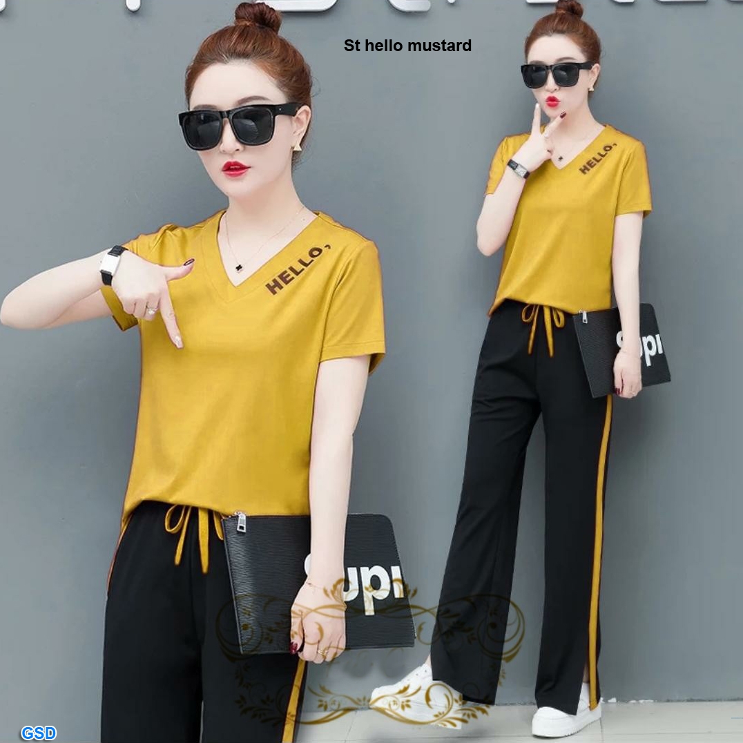 St hello Mustard@63rb min 3pcs ecer 68rb bahan babyterry full Atasan Ld96cm Pjg60cm +Celana Pjg90cm ada saku dan tali Fit L (600gr)