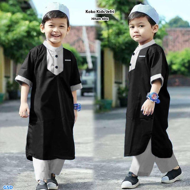Koko kids jefri Hitam abu@65rb min 3pcs ecer 70rb bahan katun,blus kancing hidup Ld84cm Pjg60cm +celana Pjg65cm Fit 4-6thn (tidak ada ukuran,tergantung anak) Tanpa Peci (200gr)