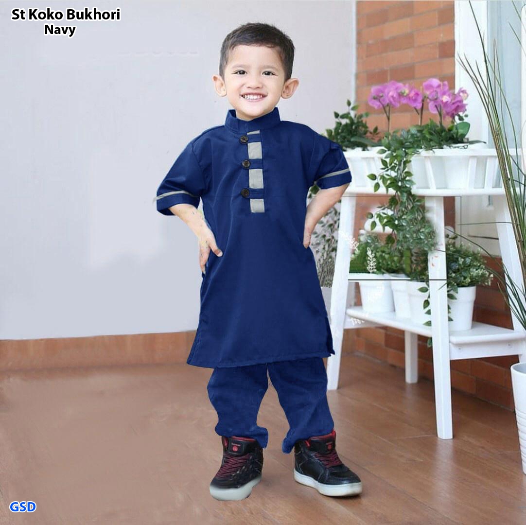 St koko bukhori navy@65rb min 3pcs ecer 70rb bahan katun blus kancing idup depan Ld86cm Pjg58cm +celana pinggang karet Pjg 65cm fit anak 5-7thn (No Size tergantung anak )250gr