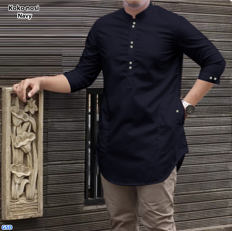 Koko nosi navy@57rb min 3pcs ecer 62rb bahan katun kancing hidup lengan 3/4 Ld100cm Pjg75cm kiri kanan ada kantong asli Fit L (200gr)