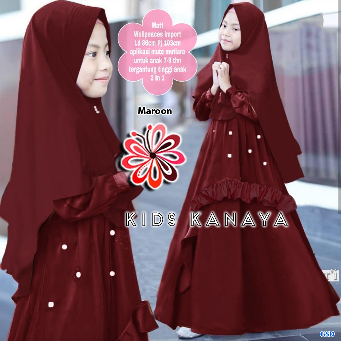 Kanaya kids maroon@85rb min 3pcs ecer 90rb bahan wollpeach import Ld86cm Pjg103cm aplikasi mutiara mote Uk 7-9thn (tergantung anak) 450gr