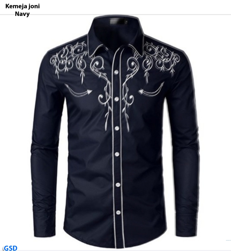 Kemeja joni navy@60rb min 3pcs ecer 65rb bahan katun strech sablon lengan panjang kancing hidup Ld100cm Pjg65cm Fit L (200gr)