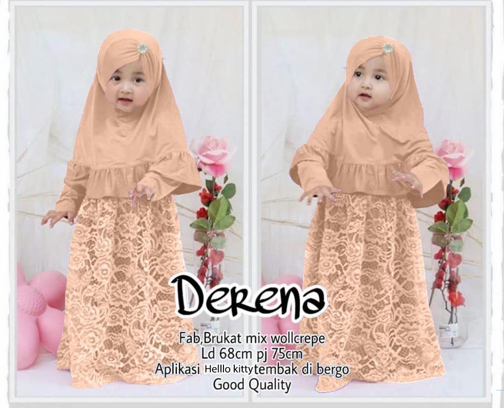 Derena peach85rb min 3pcs ecer 90rb bahan brukat mix woolcrepe Ld68cm Pjg75cm aplikasi mutiara tembak dibergo 2in1 Fit anak 3-5thn (tidak ada ukuran tergantung anak) 300gr