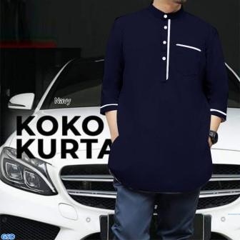 Koko Kurta navy@57rb min 3pcs ecer 62rb bahan katun tangan 3/4 kancing hidup Ld100cm Pjg75cm kombi bahan, kiri kanan ada kantong asli Fit L (220gr)