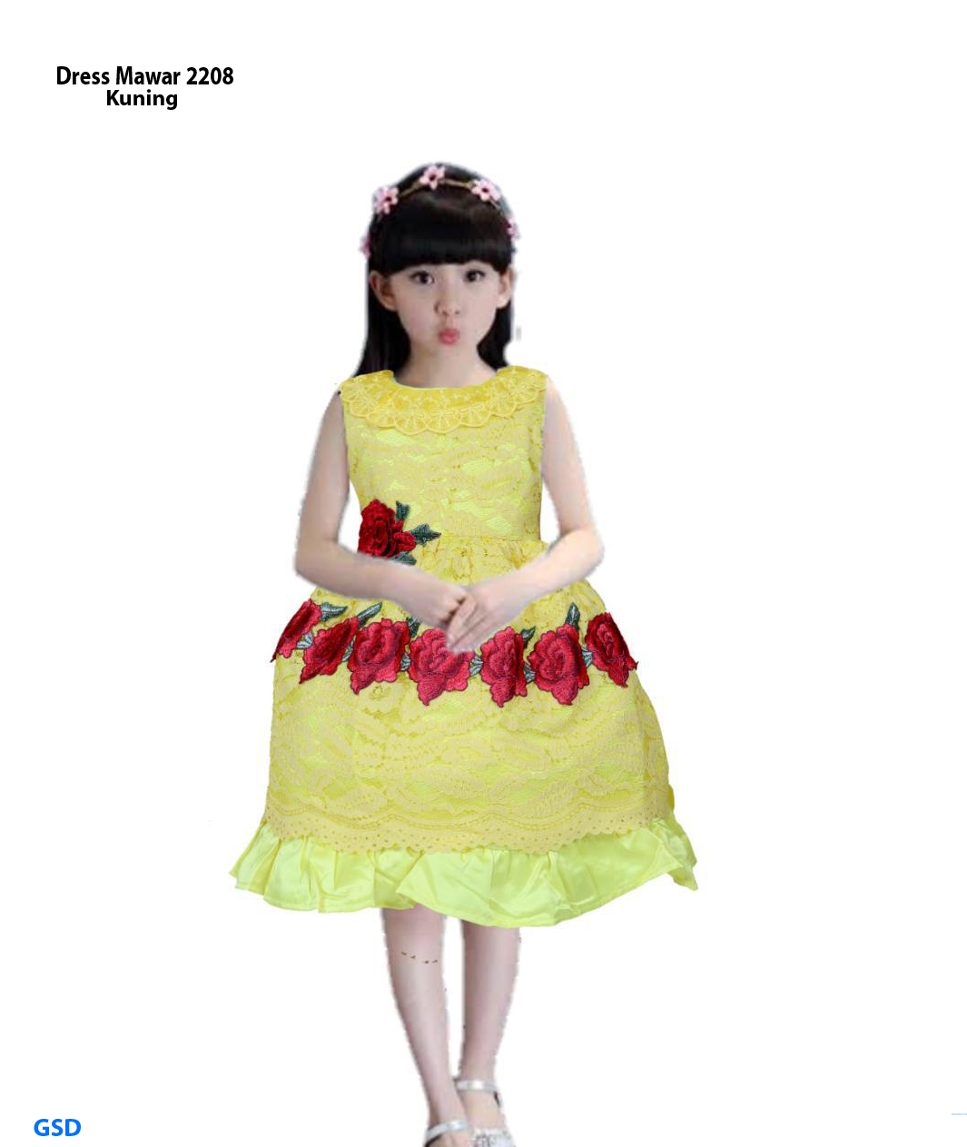 Dress mawar kuning@70rb min 3pcs ecer 75rb bahan brukat kombi saten ada furing,belakang sleting Size 4-9 Buat anak 5-7thn (450gr)