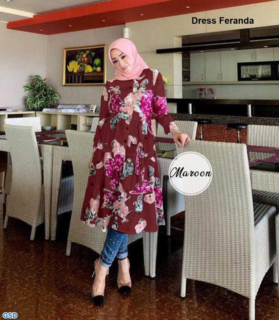 Feranda maroon@90rb min 3pcs ecer 95rb bahan monalisa kancing depan full hidup pinggang tali ikat Ld100cm Pjg95rb (Model Babydoll) Fit L (400gr) Dress Saja