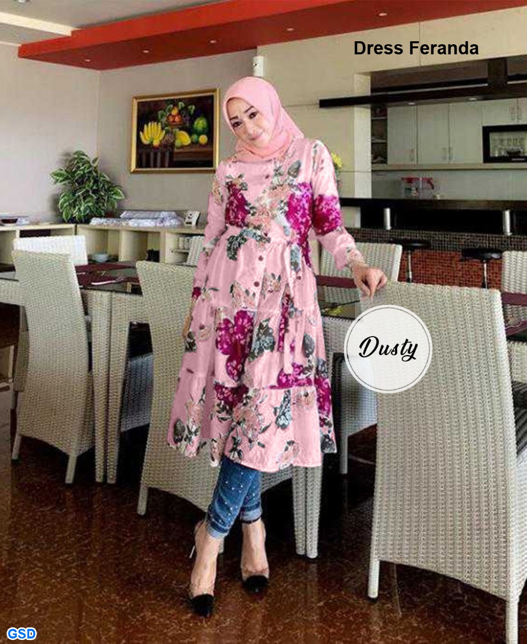 Feranda dusty@90rb min 3pcs ecer 95rb bahan monalisa kancing depan full hidup pinggang tali ikat Ld100cm Pjg95rb (Model Babydoll) Fit L (400gr) Dress Saja