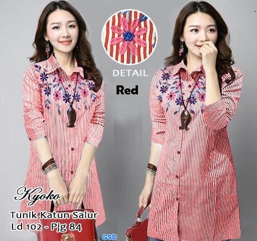 Tunik salur bordir red@61rb min 3pcs ecer 66rb